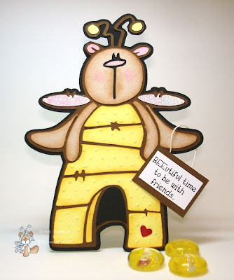 Goooood day Saturday!!! I took Bee Bear - hive digi image from Bugaboo Stamps and turned this darling into an svg using SCAL2. I then decided to make it into a shape card...did some inking for dimension and finished off with a little sentiment hanging from the foot. Check out the other fun cards created by some of the DT members HERE. When I think of summer, I certainly think of bees...yum....the honey and the bees that pollinated all the fruit trees so I can enjoy my peaches all summer long. So, I'm entering this card also in the Art Impressions - summer theme challenge.