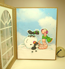 Another winter scene with the same darling image "Caroling Friends" from Doodle Pantry. I used an svg window file I made last year, along with snow drippings and is in my set of windows for sale. Left the image CAS on the front.